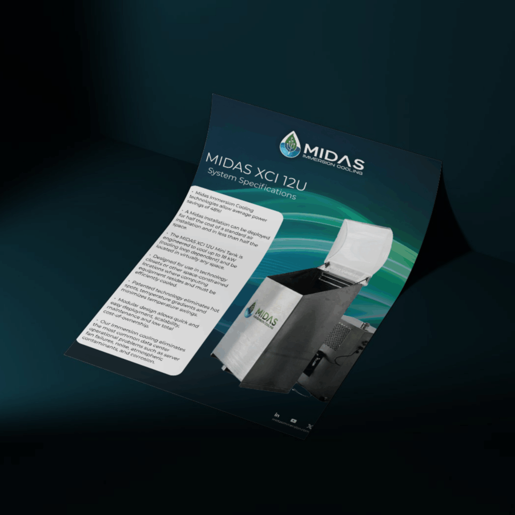 The Midas 12U tank provides up to 18 kW of heat dissipation (cooling loop dependent) which significantly reduces the cost of energy to cool the equipment. Midas XCI™ tanks can be individually managed and configured based on each customer’s prioritized needs.